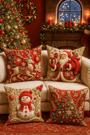 ใFestive Themeใ: The covers feature Christmas motifs including Santa, reindeer, snowman, and Christmas tree, enhancing seasonal decor.